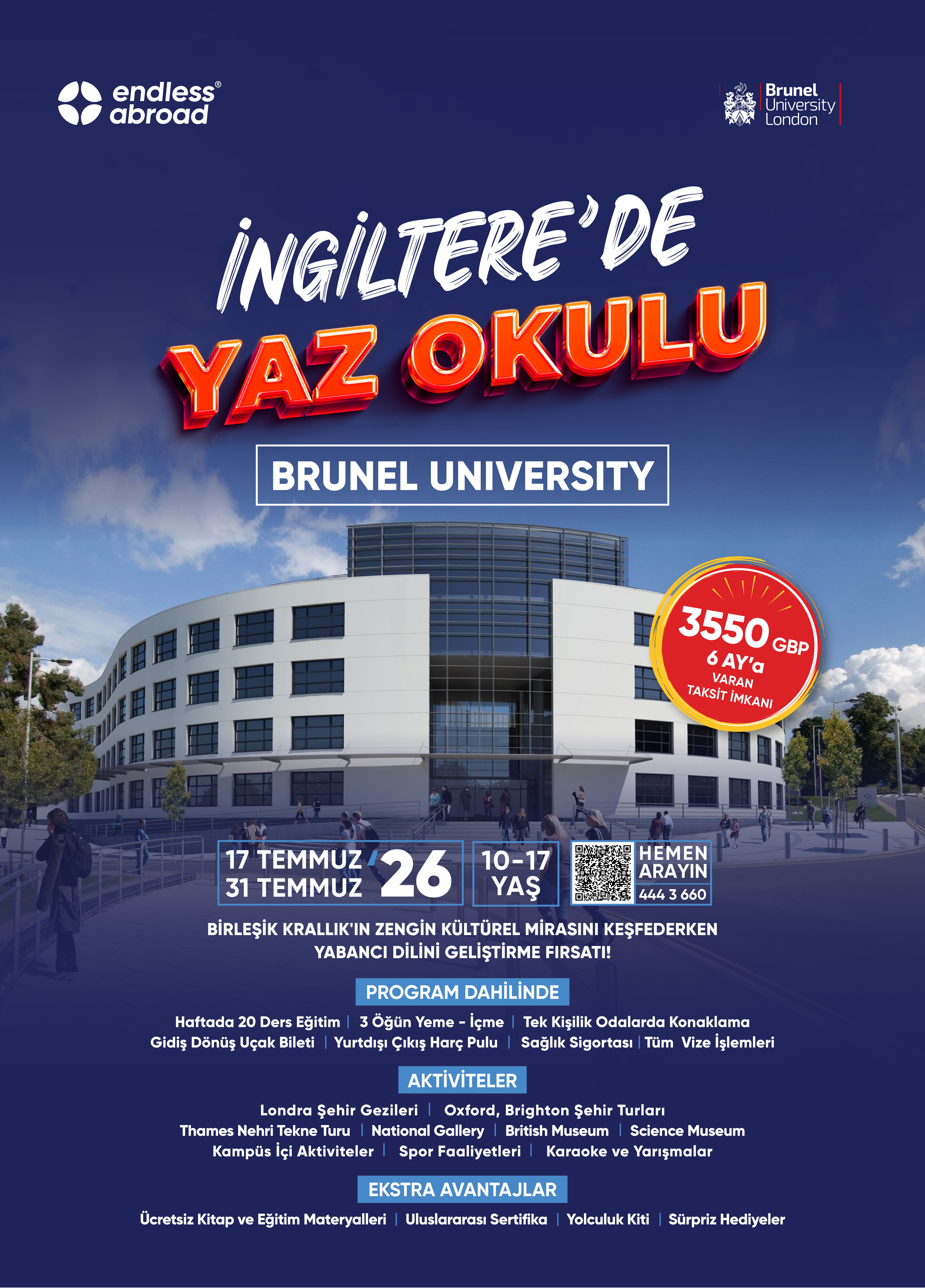 Endless Abroad ile bu programa katılan öğrencilerimizi İngilizce dil eğitimi alırken aynı zamanda yeni yerler keşfederek doyasıya gezecekleri, eğlenirken öğrenecekleri bir Yaz Okulu serüveni bekliyor!